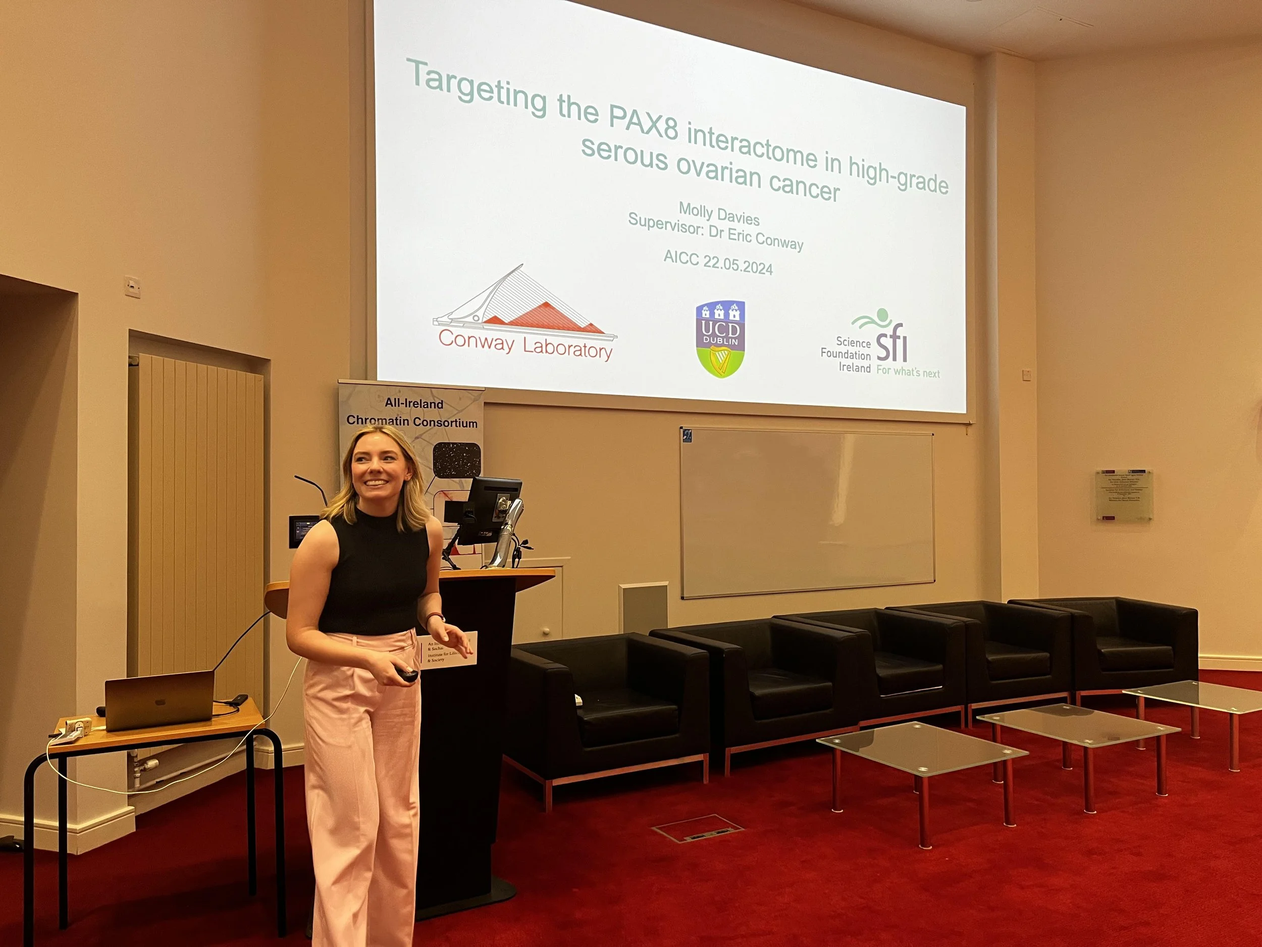 Molly Davies presenting her PhD work on PAX8 at the All-Ireland Chromatin Consortium symposium in Galway, May 2024